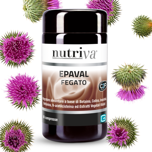 NUTRIVA EPAVAL è un integratore alimentare a base di Betaina, Colina, Inositolo, Metionina, N-acetilcisteina ed estratti vegetali. Con Cardo mariano utile per la funzione digestiva ed epatica.